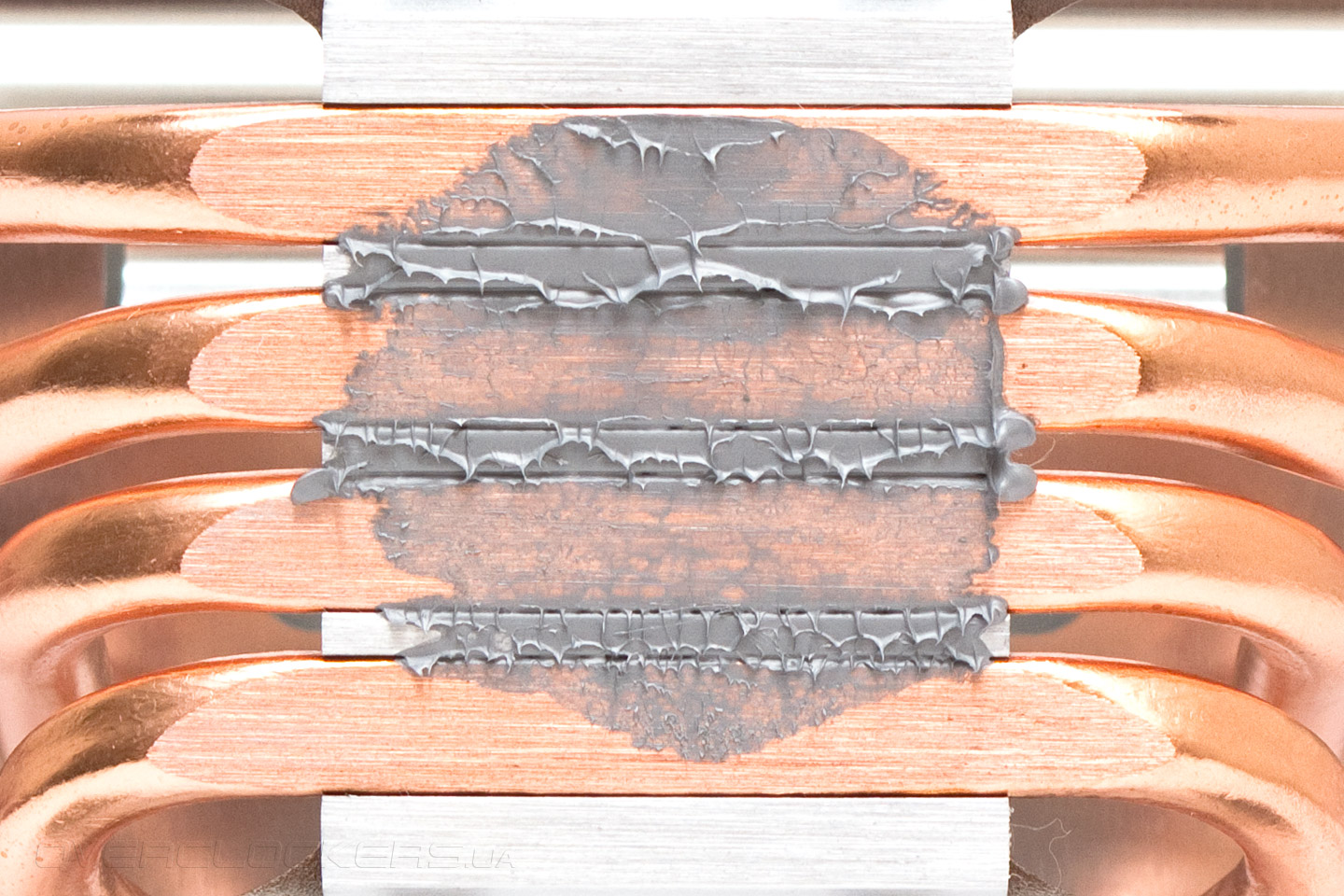 Так выглядит отпечаток термоинтерфейса на подошве кулера: