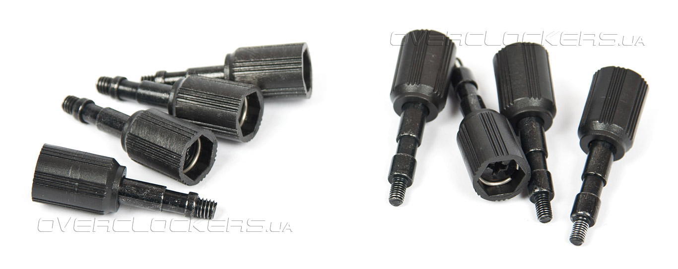 Для платформы LGA2011 предусмотрены винты с короткой резьбой. На фотографии они изображены слева: