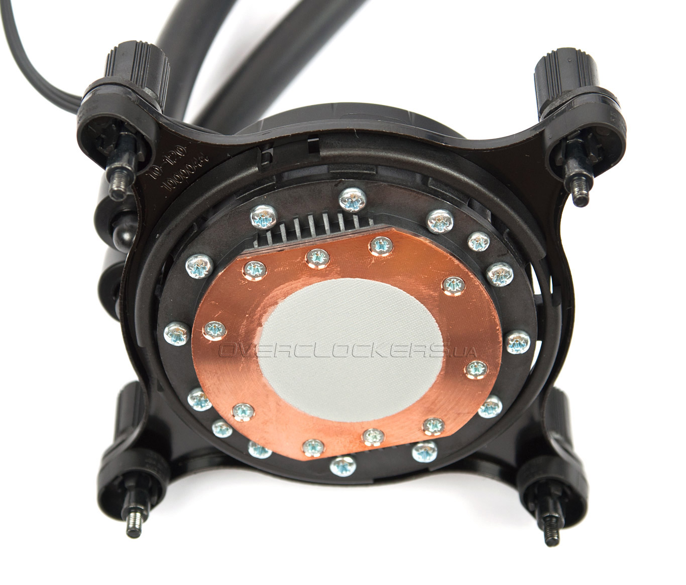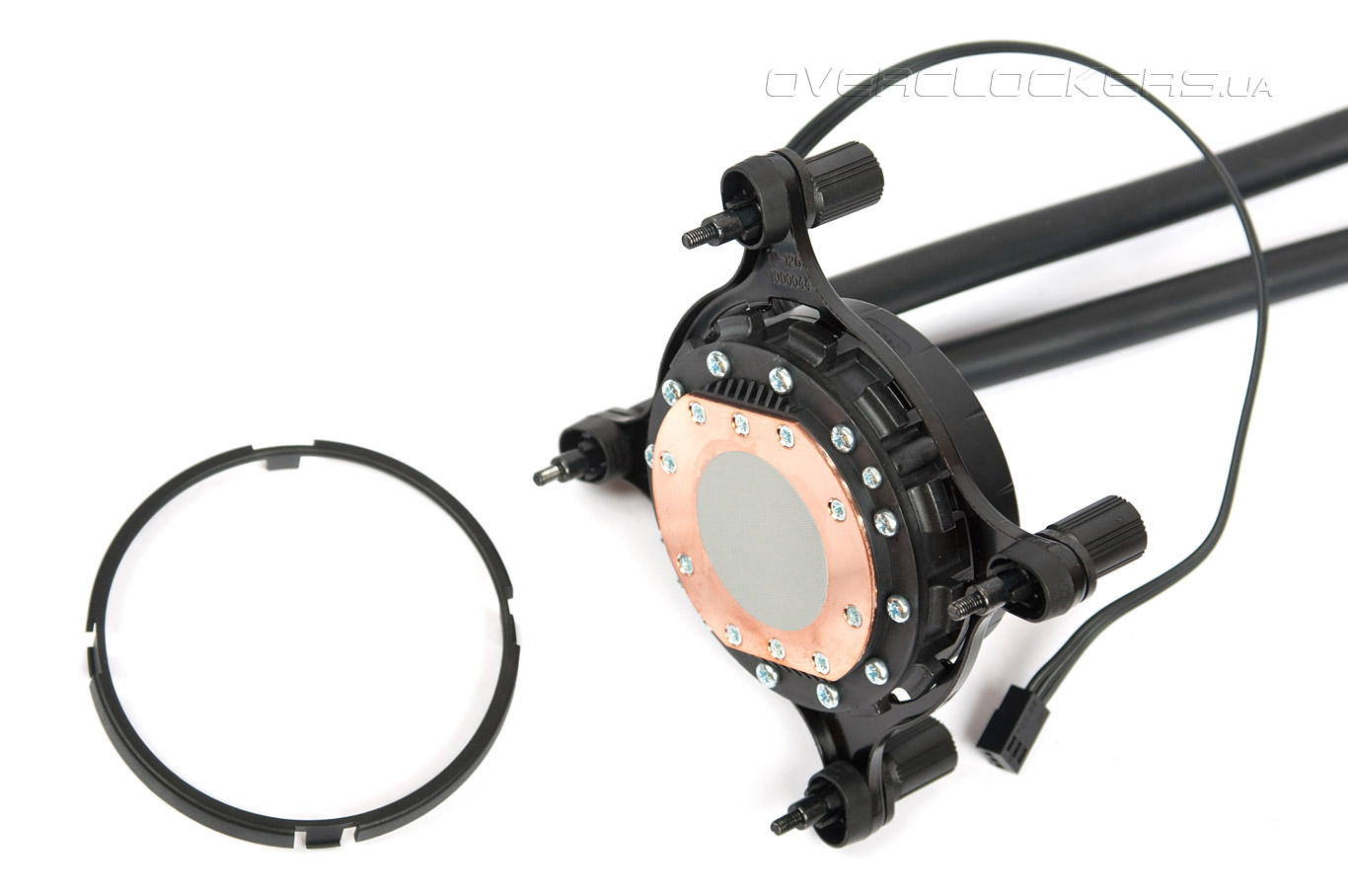 Установка почти завершена. Осталось надеть крепление на водоблок и зафиксировать его снизу кольцом с четырьмя защелками.