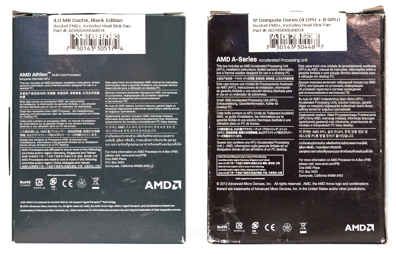 Упаковка AMD Athlon X4 860K (слева), AMD A10-7850K (справа)
