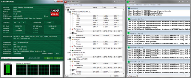 Во время экспериментов по разгону тестовый Athlon X4 860K заработал на частоте 4500 МГц при повышении напряжения на вычислительных ядрах на 0,1 В сверх номинального значения. Тем временем подсистема ОЗУ функционировала в режиме 2400 МГц с таймингами 10-12-12-31-2Т, а вот встроенный северный мост пришлось оставить работать на штатной частоте 1800 МГц, так как его малейшей разгон приводил к сбою системы на этапе инициализации оборудования.
