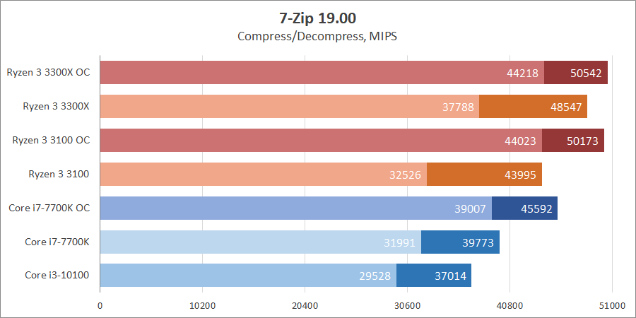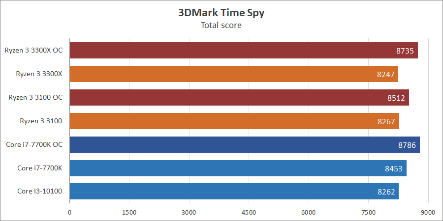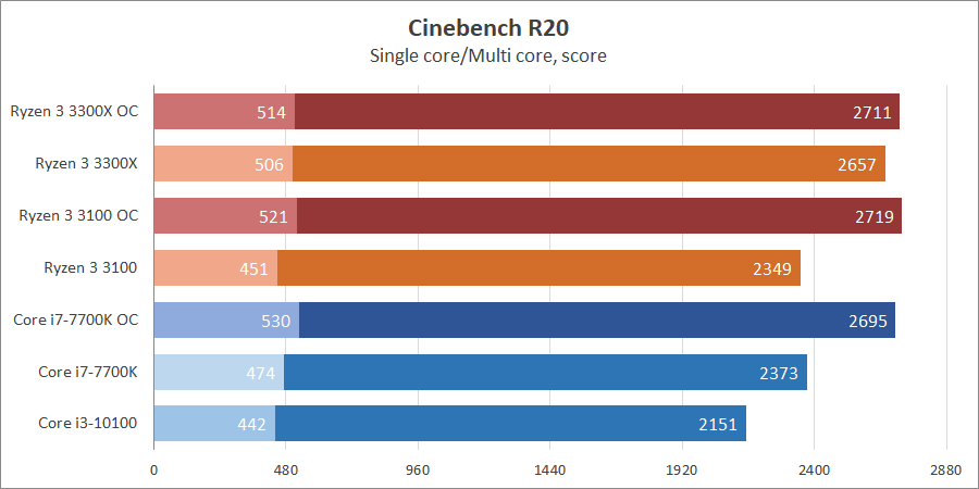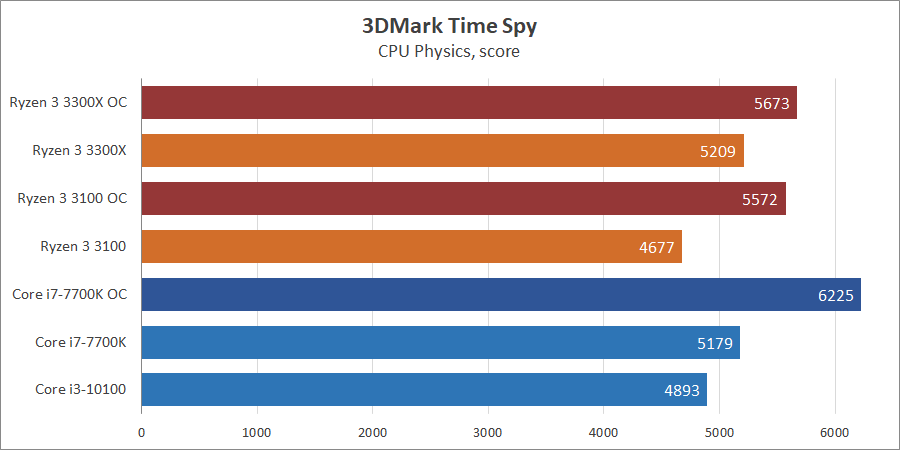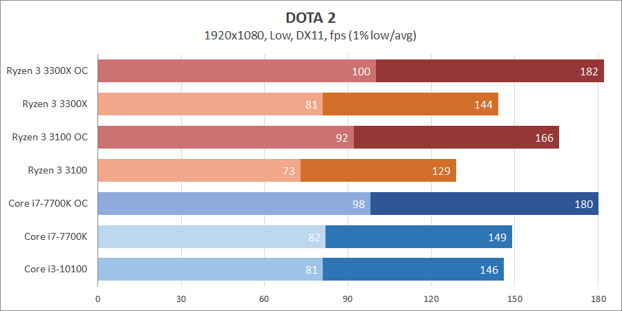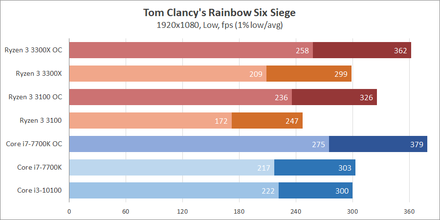 | Процессор | Ryzen 3 3300X | Ryzen 3 3100 | Core i3-10100 | Core i7-7700K |
