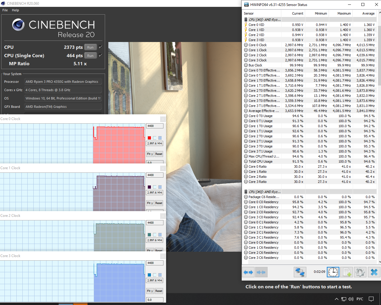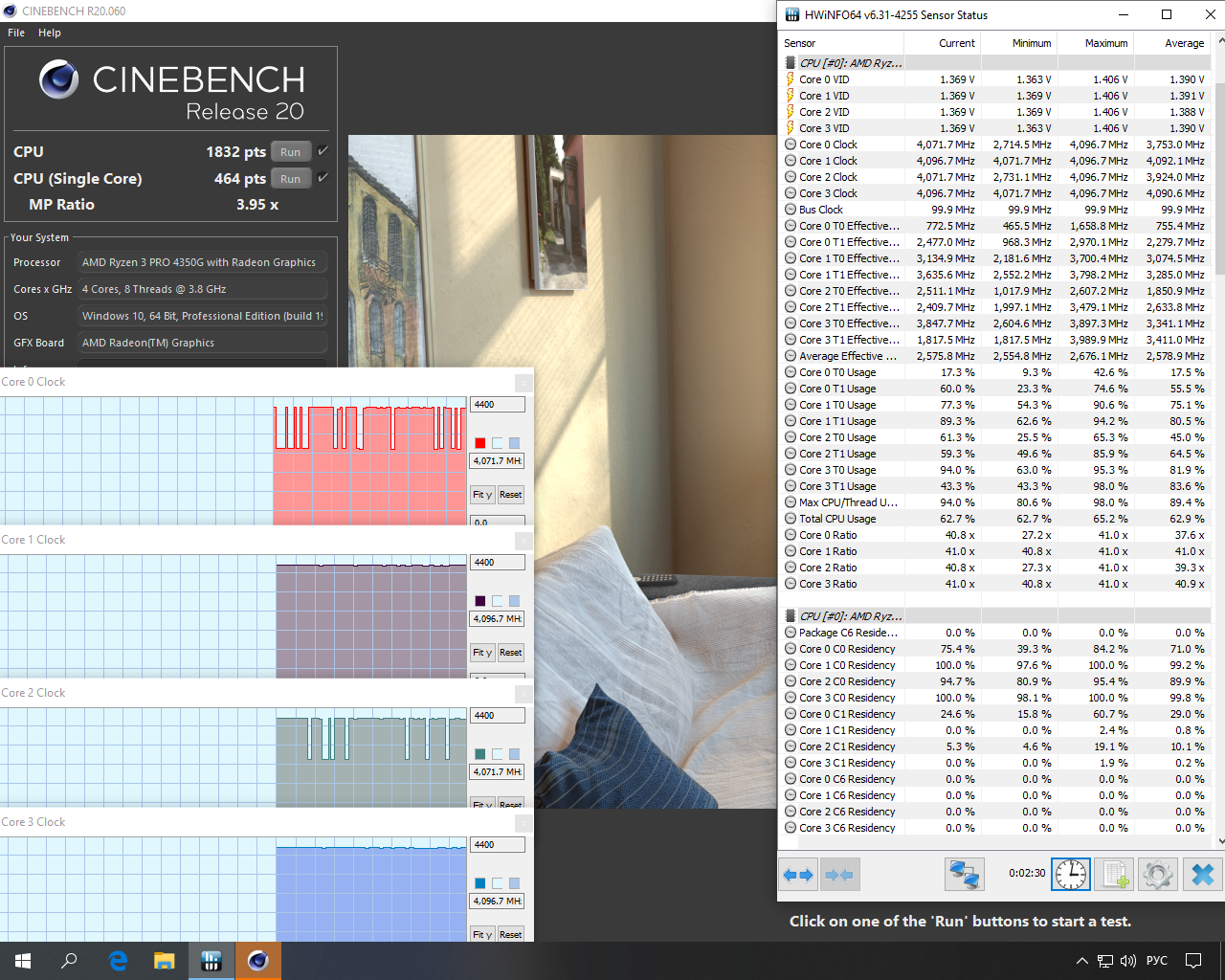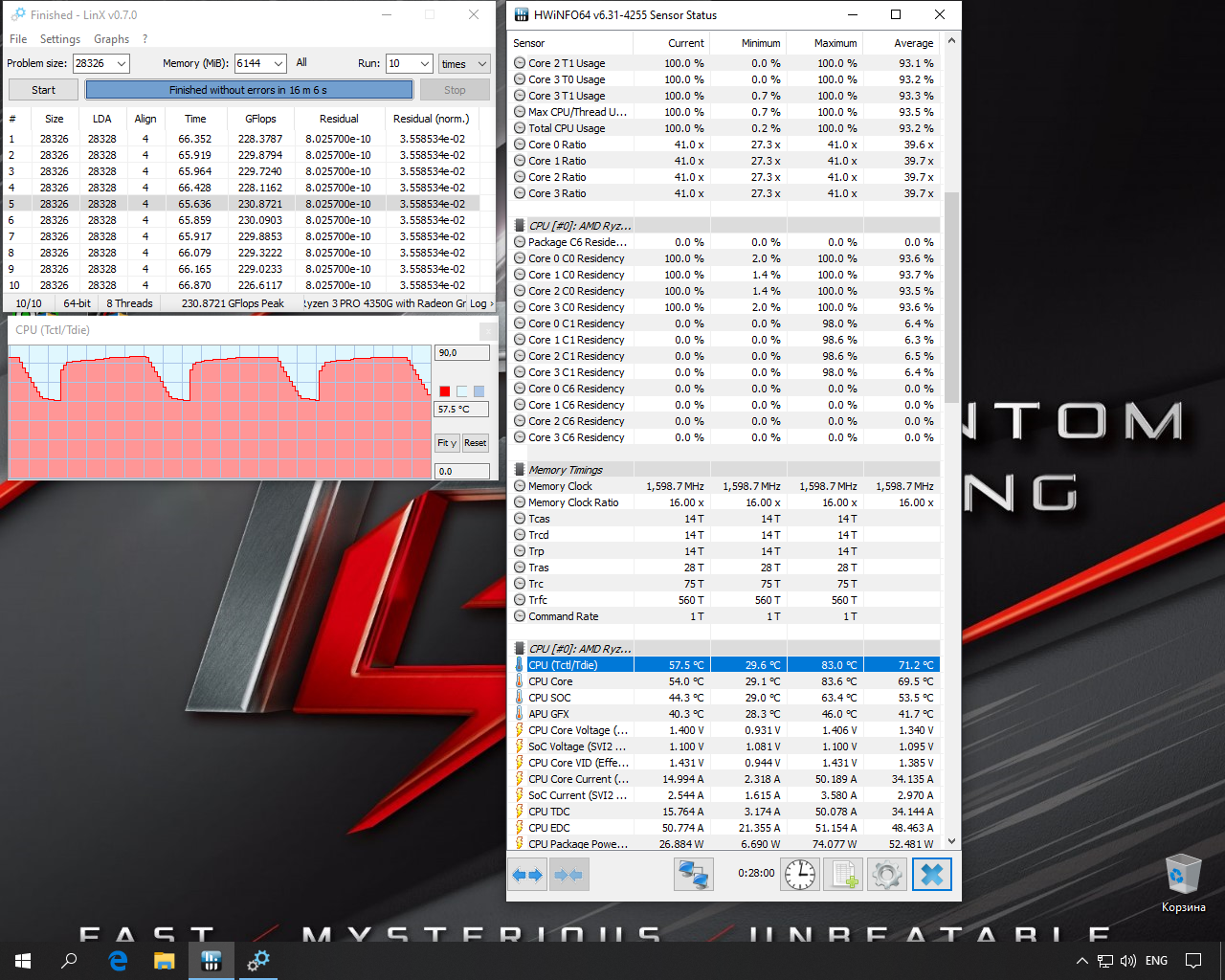 Отслеживать телеметрию оборудования пришлось сторонним ПО, Ryzen Master отказался устанавливаться. Возможно причина — PRO-версия нашего Ryzen.