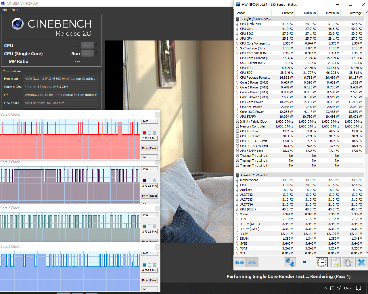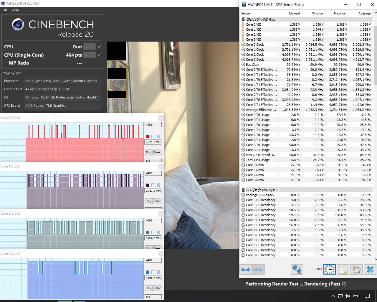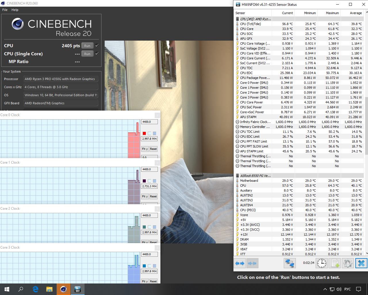 Отслеживать телеметрию оборудования пришлось сторонним ПО, Ryzen Master отказался устанавливаться. Возможно причина — PRO-версия нашего Ryzen.