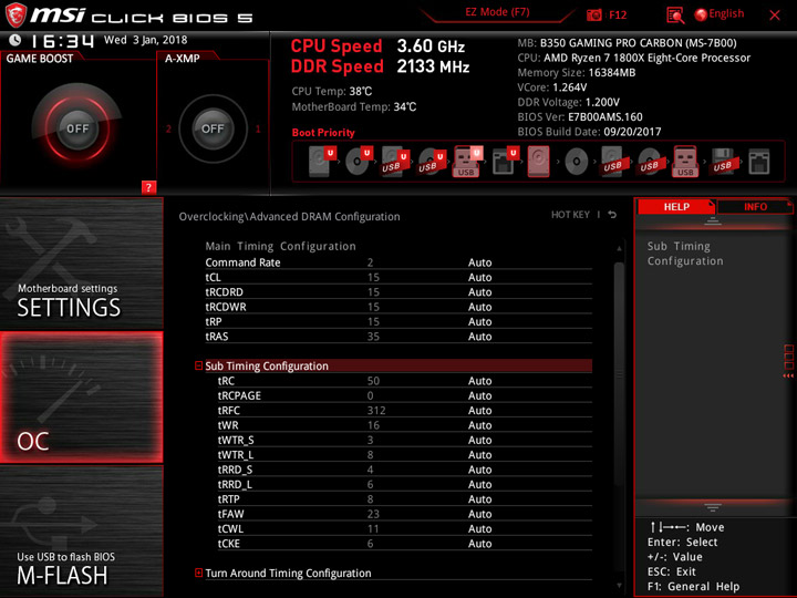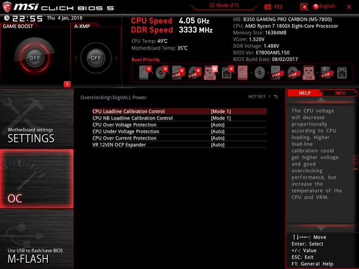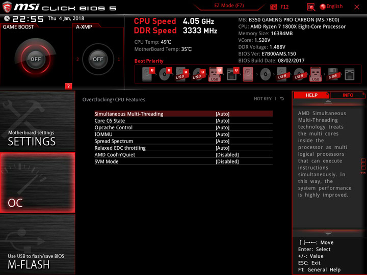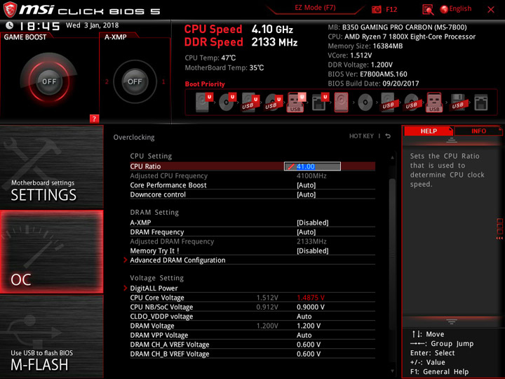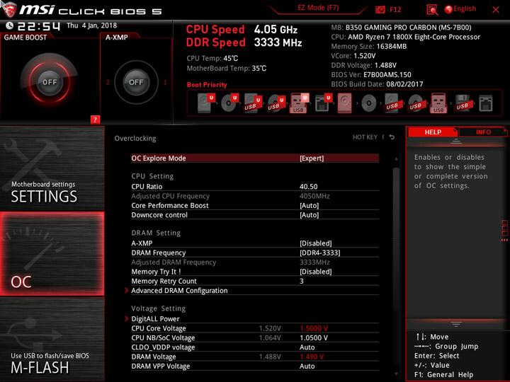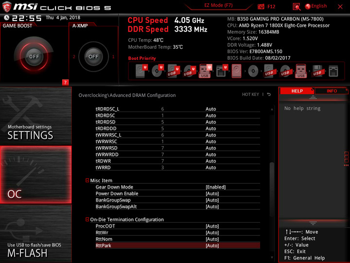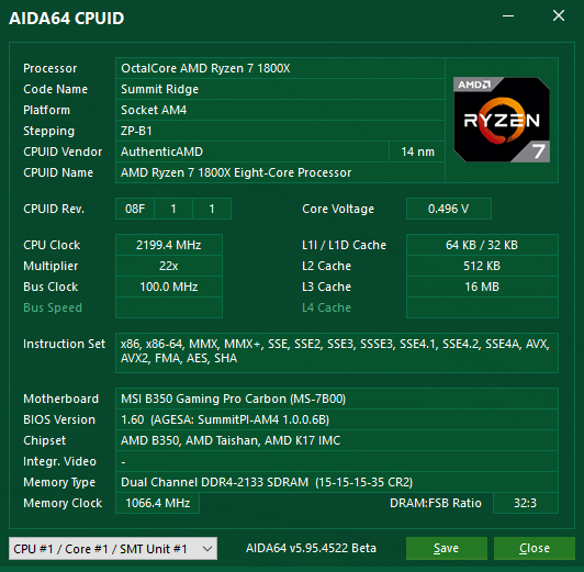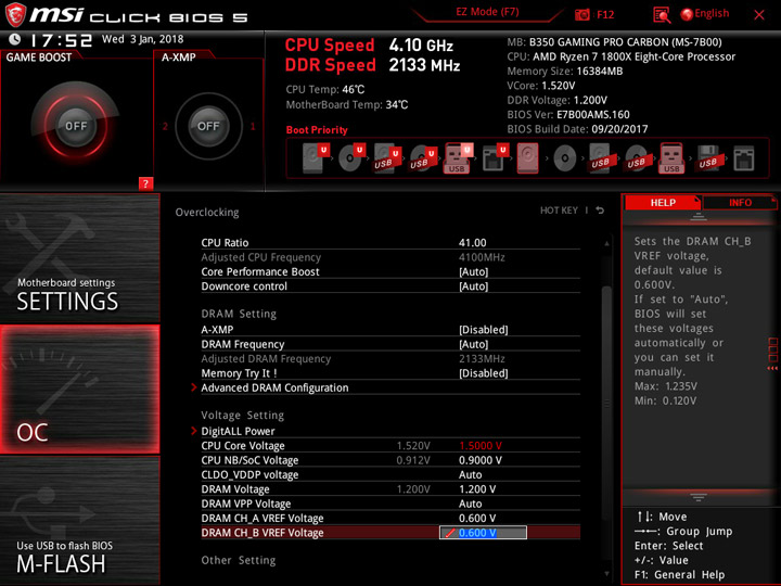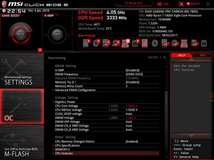- материнская плата №1: MSI B350 Gaming Pro Carbon (UEFI 1.50, AGESA: SummitPI-AM4 1.0.0.6);
