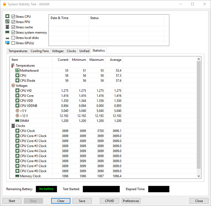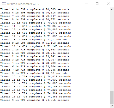 При полноценной, многопоточной нагрузке она уже не была столь высока — рост останавливался на 3,7 ГГц, напряжение не превышало 1,219 В. Тестовой задачей был сценарий «1024M» из wPrime 2.10: