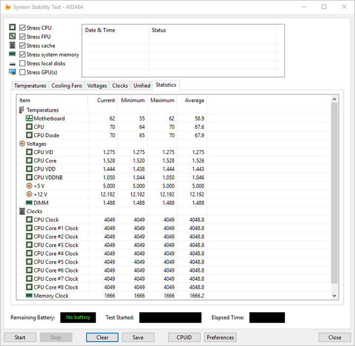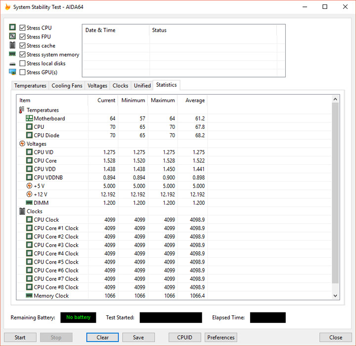 Продолжая испытания, получилось зафиксировать работоспособность ПК с эффективной частотой ЦП 4,2 ГГц. Однако эта отметка является далеко не стабильной, а лишь отдушиной для любителей бенчмаркинга. Впрочем, частотный потенциал нашего экземпляра изучен, можно смело остановиться на частое 4,1 ГГц. Для облегчения восприятия информации, полученные цифры сведены в небольшую таблицу: