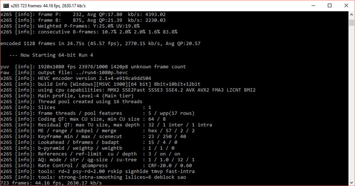 У нашего процессора не было проблем при испытаниях на частоте 4,1 ГГц и с напряжением 1,45 В, но это было при лёгкой нагрузке. Для закрепления, я привлёк более «тяжелое» — x265 HD Benchmark.