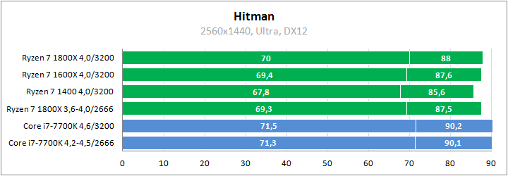 Первые результаты в Hitman показывают серьезный отрыв процессора Intel, отставание новичка AMD на уровне 30%. Однако активация DirectX 12 несколько меняет ситуацию.