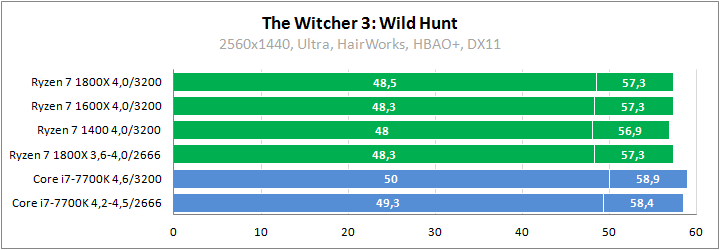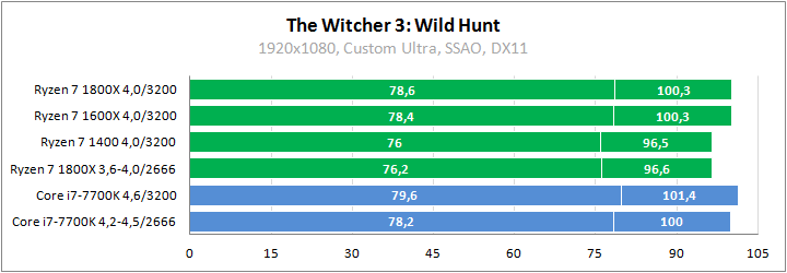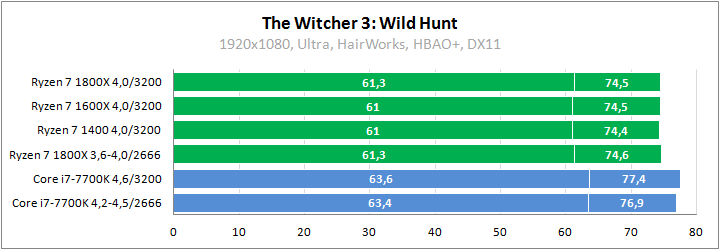 Повышение настроек до предела не меняет общий баланс. Возможно, в каких-то игровых ситуациях влияние процессора более заметно, то старший Ryzen точно позволит играть в Witcher 3 с полным комфортом на максимальной производительности, ограниченной только потенциалом вашей видеокарты.