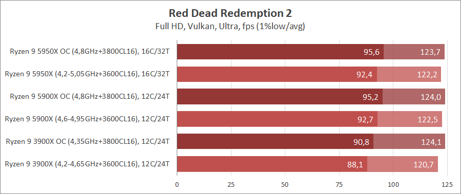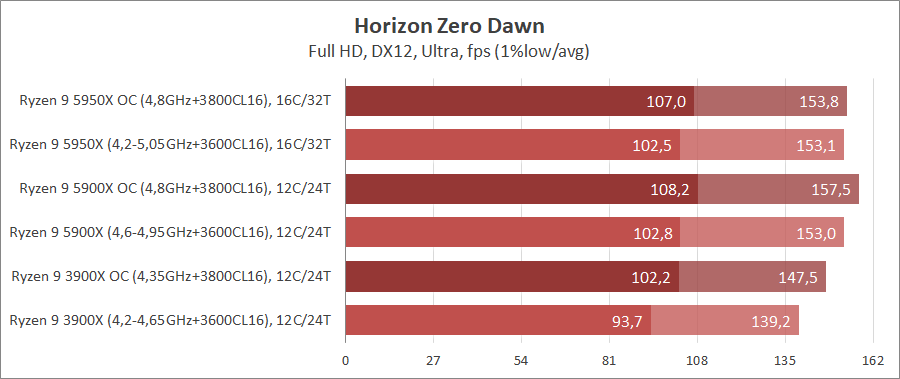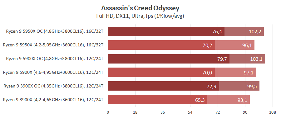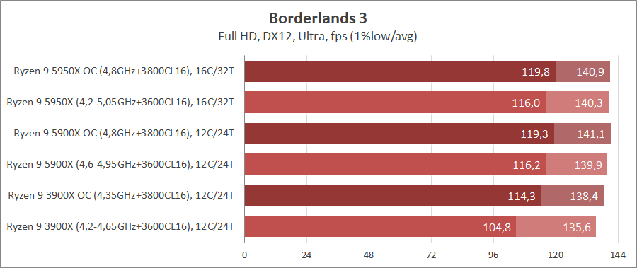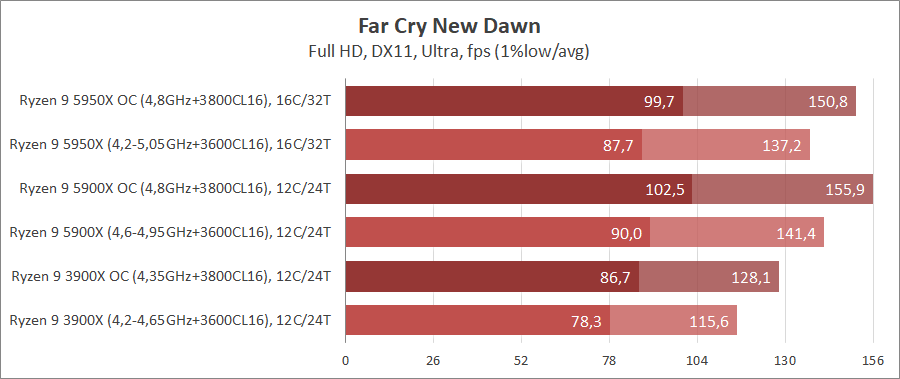 Прибавка в этой игре по чистой производительности составила 25%, еще несколько процентов даст 16-ядерник, но установка пресета «Ультра» нивелирует все достижения архитектуры Zen 3.
