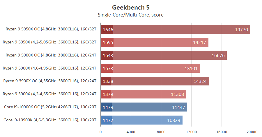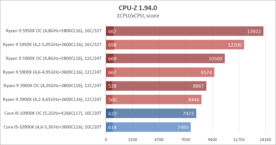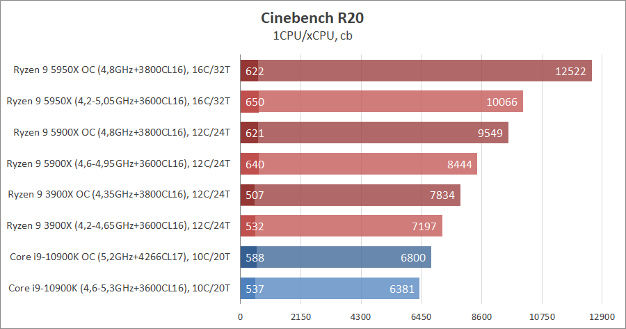 | Процессор | Ryzen 9 5950X | Ryzen 9 5900X | Ryzen 9 3900X | Core i9-10900K |