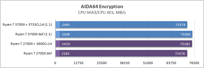 Данные тесты это скорость процессора при выполнении шифрования по алгоритмам SHA3 и AES. Существенной разницы разгон оперативной памяти не сделал, а если быть точнее ее вовсе не оказалось, даже между разными поколениями.