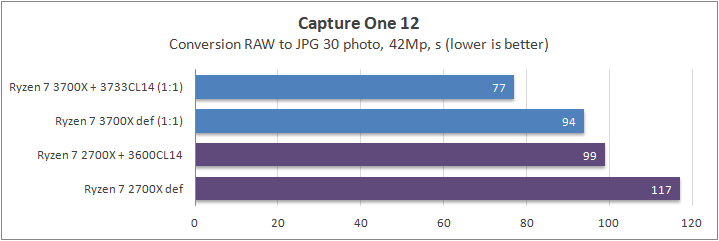 Почти 25% составил отрыв между Ryzen 7 2700Х и Ryzen 7 3700Х, также было замечено существенное влияние разгона ОЗУ на производительность.