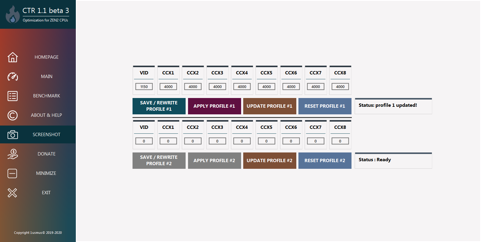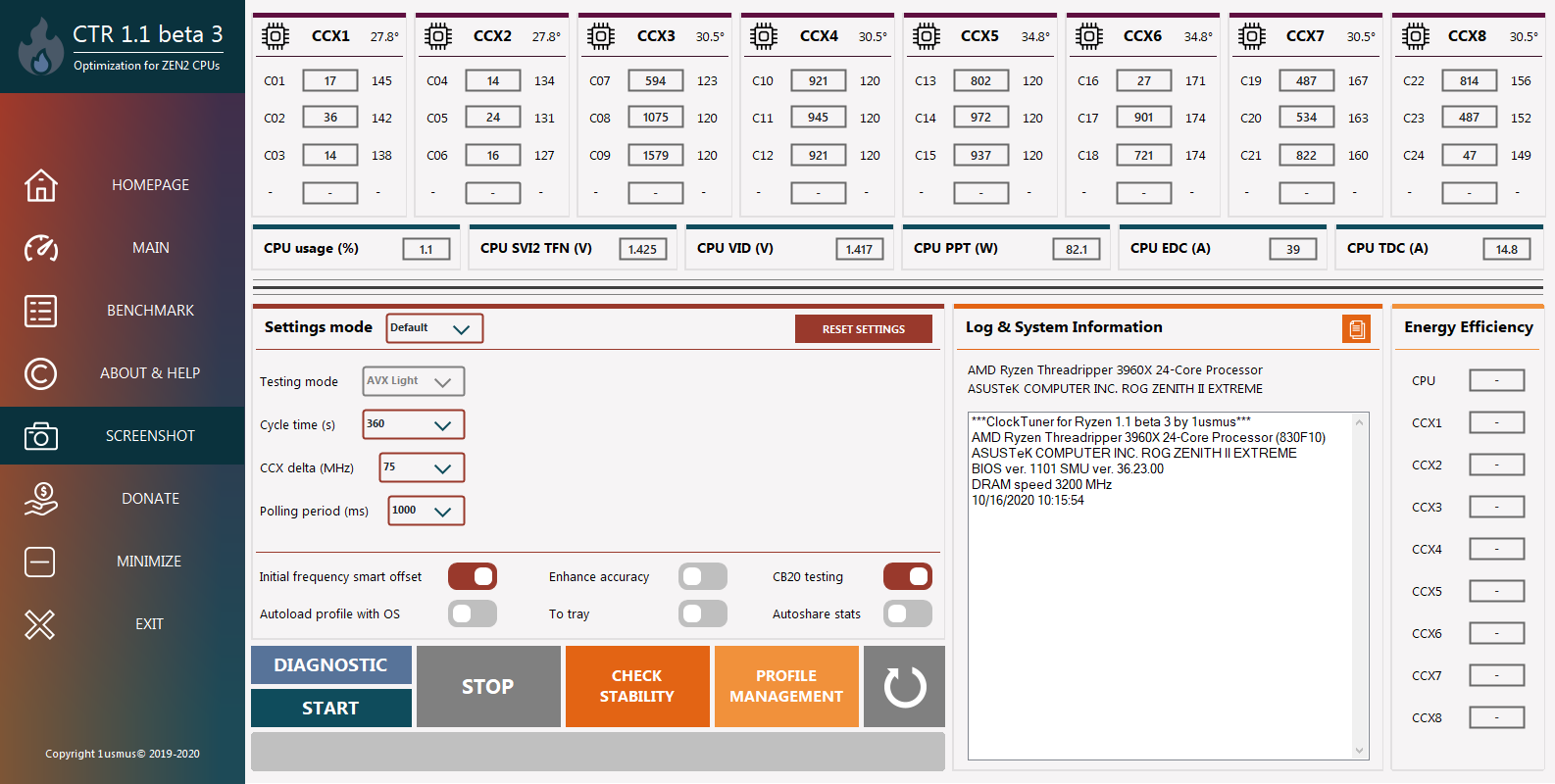 CTR 1.1 получил новое ядро с рядом дополнительных правил. Теперь, прежде чем сделать шаг на более высокую частоту CTR проверяет текущую частоту со сниженным напряжением относительно референсного. В большинстве случаев это позволяет предотвратить BSOD во время частотного шага или высокого Vdroop. Это так же позволяет уберечь систему от ложного шага на более высокую частоту, если CCX находится на границе с нестабильностью.