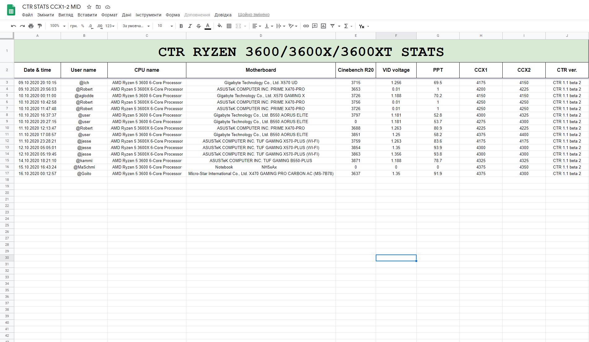 - CTR RYZEN 3600/3600X/3600XT STATS