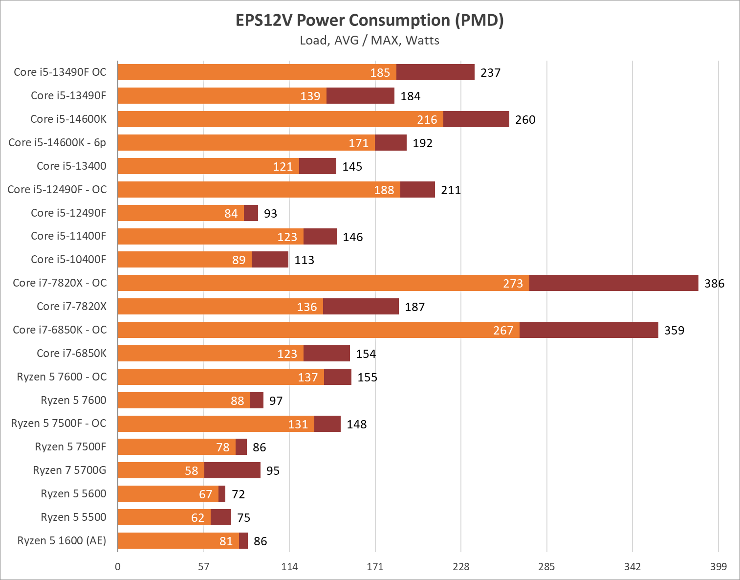 Среди актуальных решений Intel энергопотребление не сильно выделяется на фоне альтернатив, а вот, если сравнивать с решениями красного лагеря… все перед глазами.