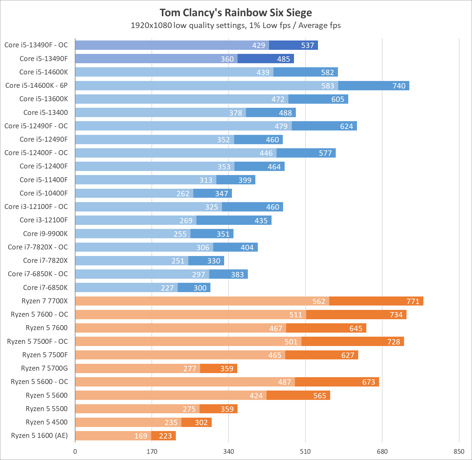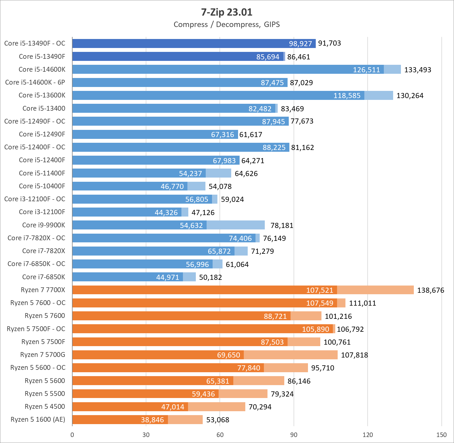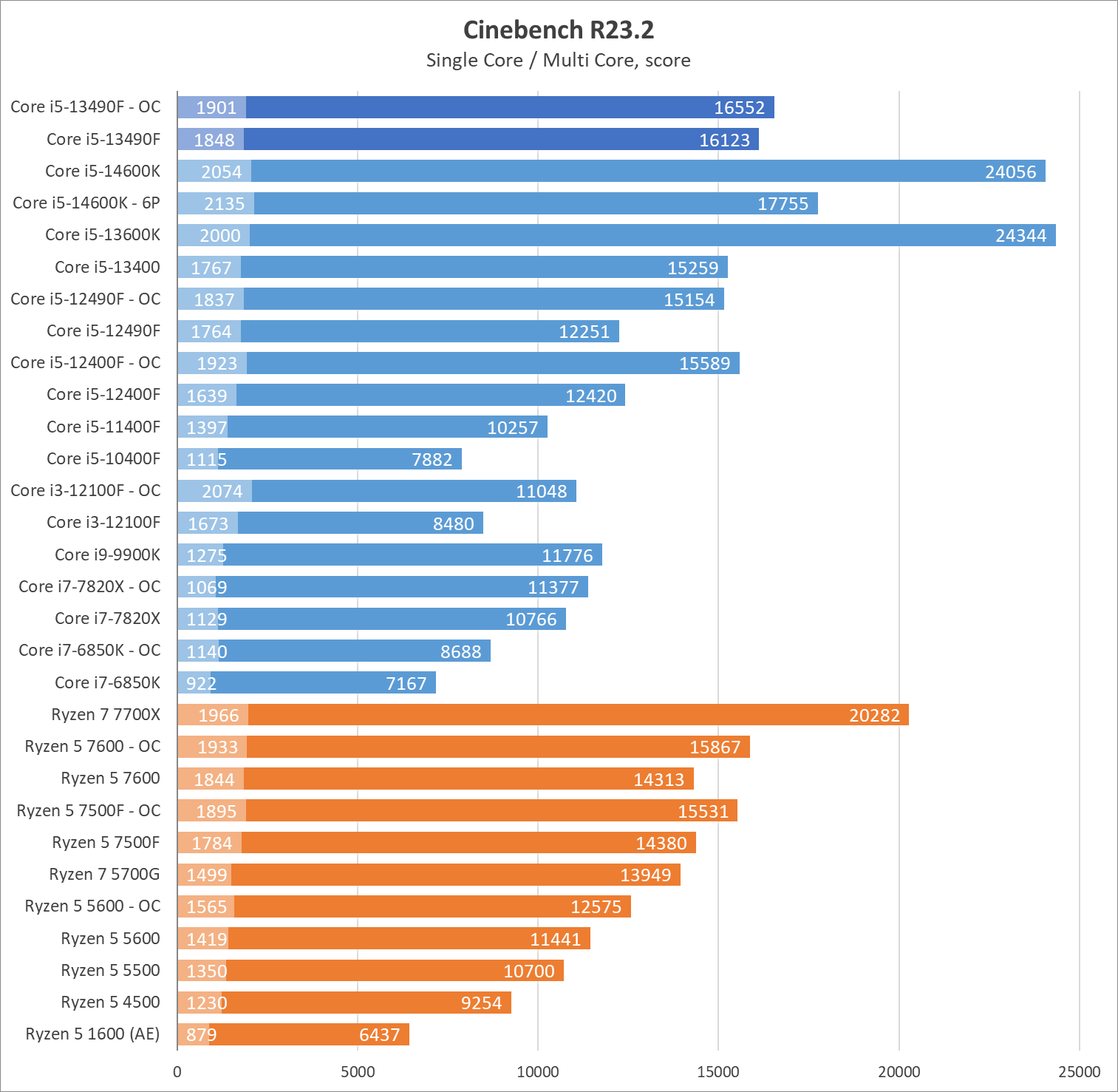 | Процессор | Core i5-12400F | Core i5-12490F | Core i5-12500 | Core i5-13400F | Core i5-13490F | Core i5-13500 |
