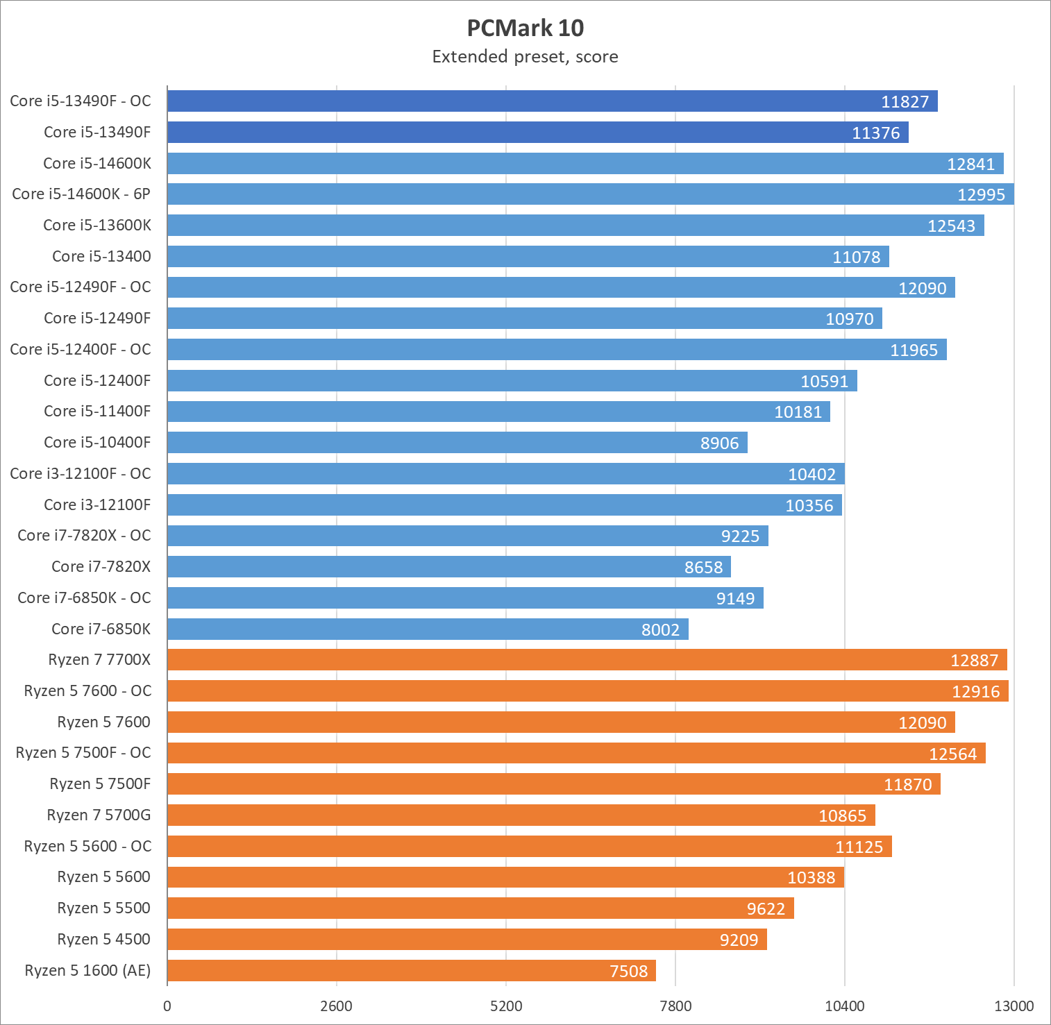 - процессор: Intel Core i5-13490F;