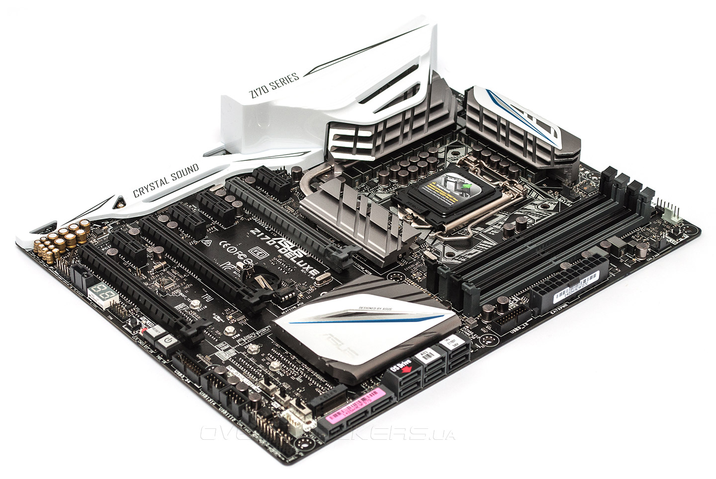 Основой для тестового стенда послужила материнская плата ASUS Z170-Deluxe — флагманский продукт для процессоров Skylake от тайваньской компании ASUSTeK, который базируется на чипсете Intel Z170. Данная модель предлагает широчайшие возможности расширения и обладает отличным запасом прочности, с ее подробным обзором вы сможете ознакомиться уже в ближайшее время.
