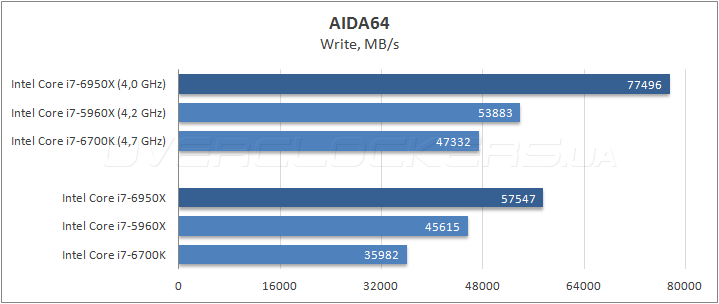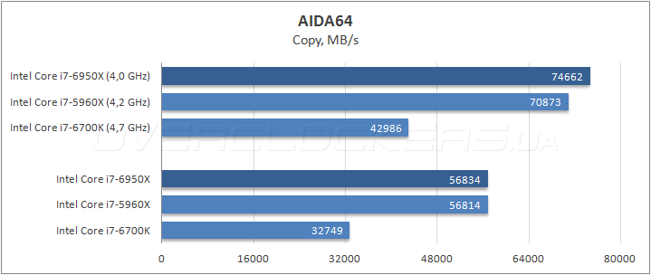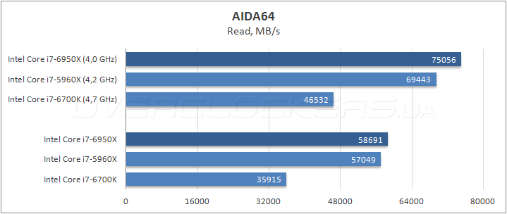 - AIDA64 5.70.3861 (Cache & Memory benchmark; для Core i7-6950X);