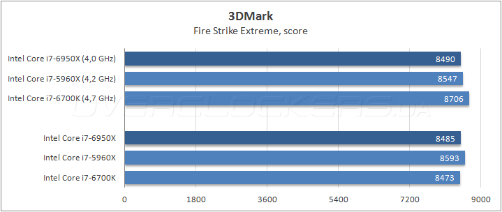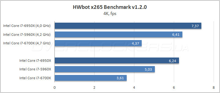 | Core i7-6950X | Core i7-6950X OC | Core i7-5960X | Core i7-5960X OC | Core i7-6700K | Core i7-6700K OC | |