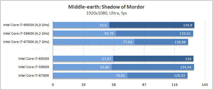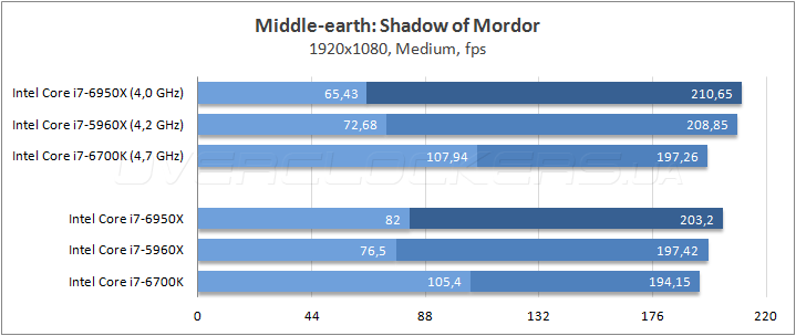 В Middle-earth: Shadow of Mordor процессор справился неплохо, хотя и обогнал предшественника лишь незначительно.