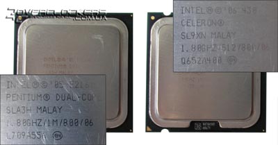 Итак, Intel отказалась в новом двухъядерном Pentium, как и в обычном Celeron, от архитектуры NetBurst в пользу Core, благодаря чему при меньших значениях частоты и энергопотребления удалось сохранить производительность относительно устаревшего поколения, работающего на почти вдвое больших частотах. Компания также ввела новые обозначения процессоров. Так, обновленный Pentium имеет название Pentium Dual-Core E21xx (напомним, что Core 2 Duo имеют индексы 6ххх и 4ххх), а бюджетная модель получила более высокий индекс вида Celeron 4xx и лишилась буквы "D".