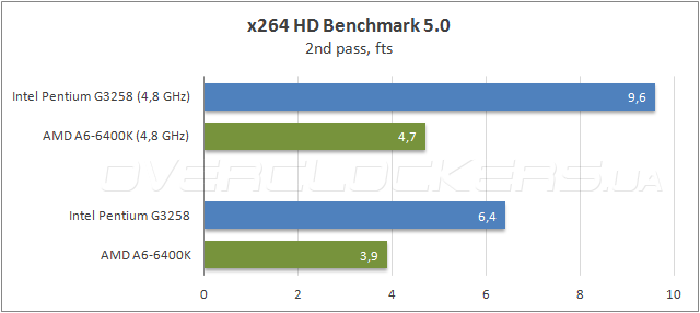 | Intel Pentium G3258 | Intel Pentium G3258 OC | AMD A6-6400K | AMD A6-6400K OC | |