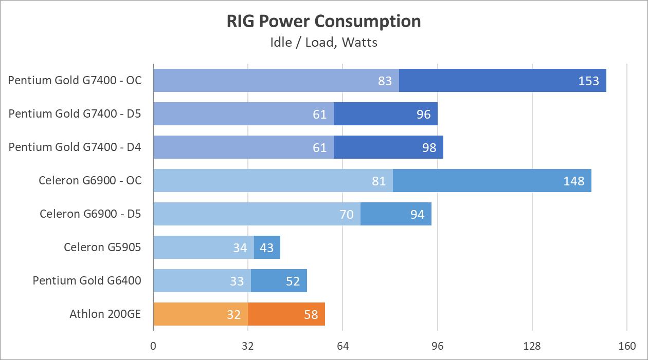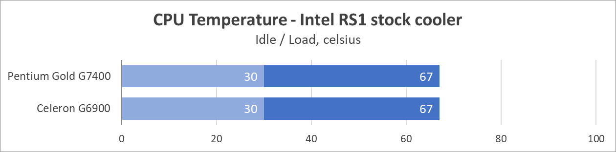 Сперва замеры потребления и температур. Как и с Celeron, платформа, к сожалению, проигрывает предшественникам в лице Comet Lake: