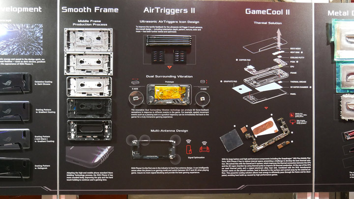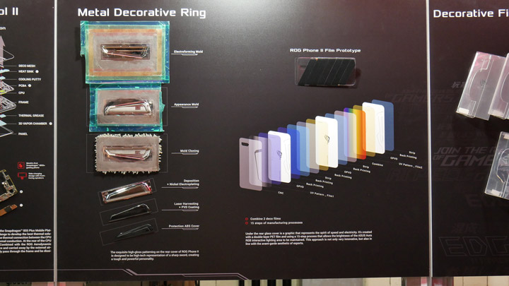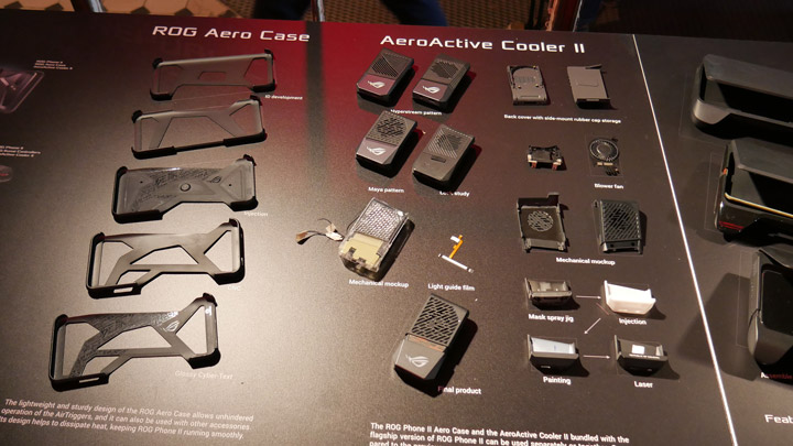 К ROG Phone II предлагается множество аксессуаров в ассортименте. В частности, беспроводной джойстик ROG Kunai, который можно использовать отдельно или закрепить на смартфон. Есть TwinView Dock II — докстанция с дублирующим экраном и Mobile Desktop Dock — подставка под смартфон. На презентации был обнаружен отдельный стенд, где демонстрировался весь процесс разработки и реализации данного смартфона и его аксессуаров, от концепта до финального продукта. Фотографии стенда можно полистать в закрепленной ниже галерее.