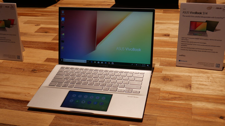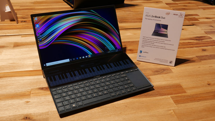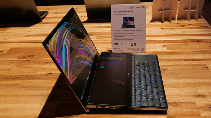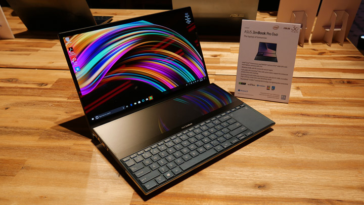 Фирменная «фишка» ASUS с двумя экранами в ноутбуке приобрела новое воплощение в лице 15,6″ ASUS ZenBook Pro Duo. Второй вспомогательный 14,4″ экран, ScreenPad Plus, встроенный в нижнюю часть корпуса возле шарнира, позволяет перетянуть на себя много дополнительных функций и элементов, чтобы не занимать ими основной дисплей. Процессор Intel Core i9, видеокарта Nvidia GeForce RTX 2060, сенсорный дисплей 4К UHD с цветовым охватом DCI-P3 в 100% и сертификатом PANTONE. И конечно же Thunderbolt 3 и беспроводной модуль Wi-Fi 6. За этот вариант просят 2999 евро и доступен в продаже уже сейчас.