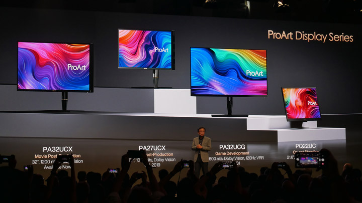 По подсчетам ASUS в мире есть более 200 млн. творцов контента разного рода, которые используют для этого ПК. Именно им адресована техника из серии ASUS ProArt, которая развивается начиная с 2011-го года. Творить вечное и доброе без хорошего монитора не получится и именно с линейки дисплеев началось освещение серии ProArt. Точнее с 32″ монитора PA32UCG — первого в мире (по состоянию на 1 сентября 2019 года) устройство с разрешением 4К HDR (3840х2160 точек), динамической частотой обновления от 48 до 120 Гц чтобы избежать подергивания и размытия изображения, пиковой светимостью в 1600 нит и постоянной в 1000, контрастом 1000000:1 и индивидуальной подсветкой зон экрана светодиодами в количестве 1152 штук. Вся эта прелесть откалибрована с завода по стандарту DCI-P3, c Delta-E<1 цветовой разницы. И в качестве бонуса тут есть россыпь портов Thunderbolt 3, DisplayPort, HDMI и USB. Доступен он будет с 1 квартала 2020.