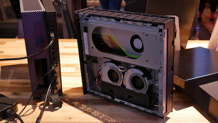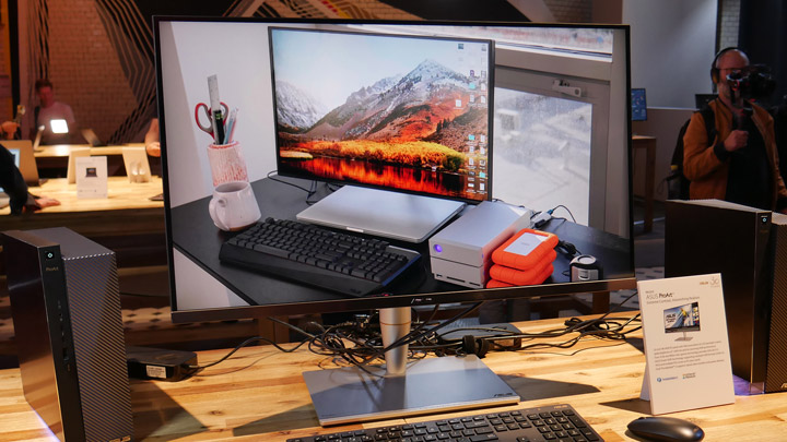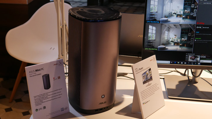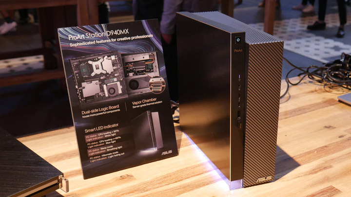 Для подобных дисплеев нужна мощная рабочая станция. С высокой производительностью, компактными размерами, надежная и стабильная, а еще тихая и холодная. ASUS преуспели и в этом. ProArt Station D940MX имеет тонкое 8-литровое шасси, которое на 40% меньше корпуса стандартного ПК. В начинку входят процессор Intel Core i9-9900К, размещенный на двухсторонней материнской плате. Оперативной памяти может быть до 64 ГБ, накопители включают в себя PCIe SSD на 512 ГБ и дополнительный 2,5″ диск SSD на 512 ГБ. Графика может быть Nvidia Quadro RTX 4000 или Nvidia GeForce RTX 2080 Ti. Для охлаждения используется гибридная система со встроенной испарительной камерой, создающая уровень шума менее 37 дБ (А) в нагрузке. Внутренняя структура шасси обладает раздельными тепловыми зонами. Есть тут и умная подсветка, информирующая пользователя об уровне нагрузки ПК. И внешние порты Thunderbolt 3, куда же без них. Счастье будет доступно в 4-ом квартале этого года.