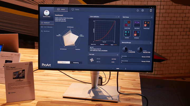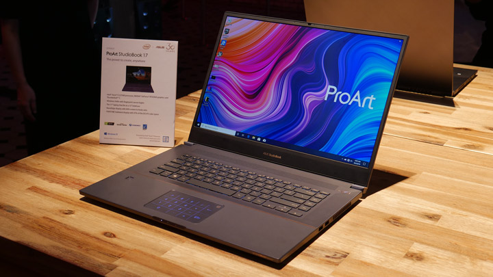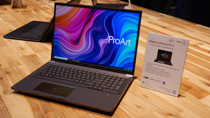 Серию компактных рабочих лошадок для зажиточных дизайнеров возглавляет ProArt StudioBook Pro X. В данном устройство 17″ экран смогли установить в 15″ шасси, при этом сохранив соотношение сторон в нем 16:10. Экран имеет Delta-E =1, охват 97% цветового пространства DCI-P3. В начинку входит Intel Xeon E-2276M и Nvidia Quadro RTX 5000 причем работает это все без тротлинга. А еще серия ProArt StudioBook отличается низким уровнем шума (менее 39 дБ (А) в нагрузке), и соответствием военному стандарту США MIL-STD 810G по прочности.