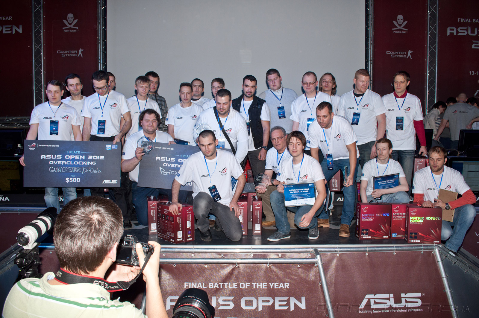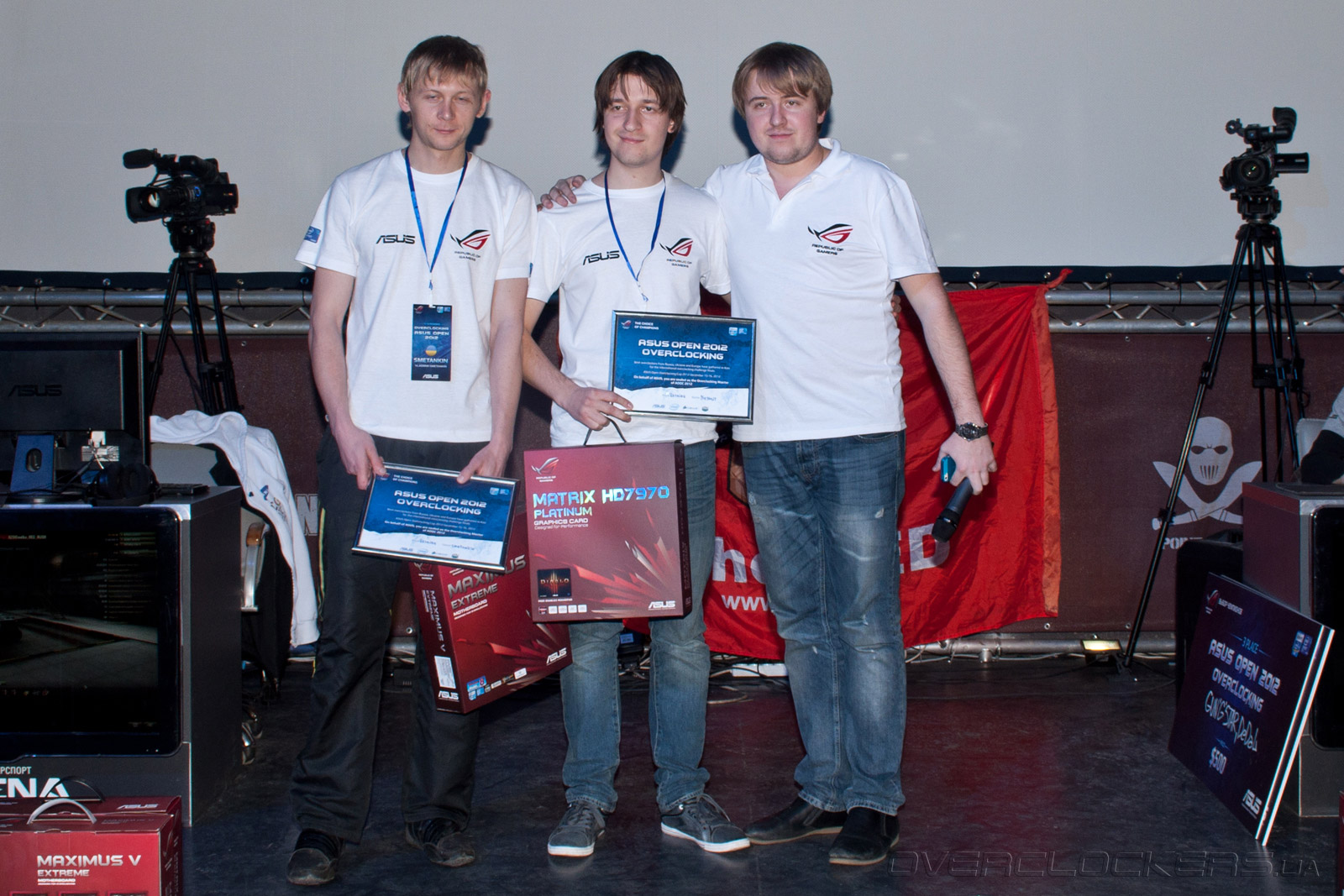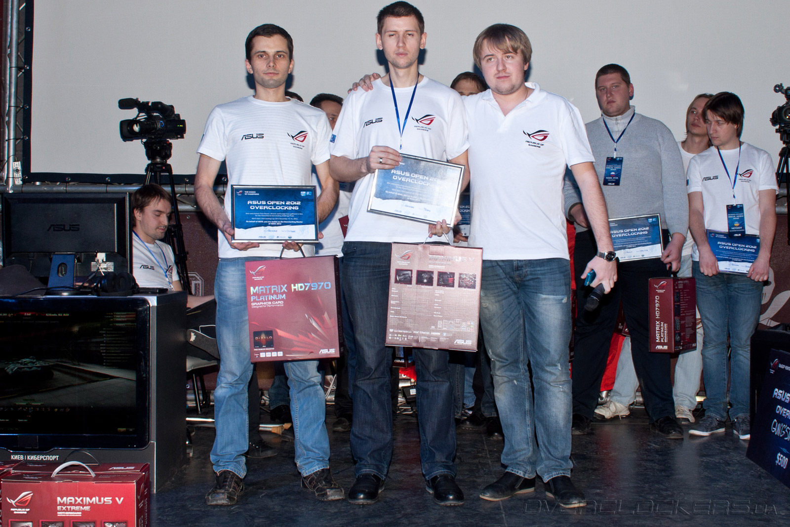 Несмотря на богатый опыт участия в подобных турнирах, наши соотечественники не достигли заметных результатов ни в одной из дисциплин. Возможно, парням попался неудачный процессор, или же им просто не повезло. В итоге, команда Ukraine-3 набрала меньше всего очков и заняла последнее место, а её участники в память о проведении турнира получили системную плату ASUS Maximus V Extreme и видеокарту ASUS Matrix-HD7970-P-3GD5.
