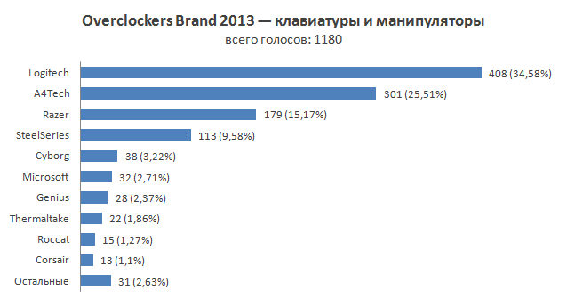 Вот такие они, результаты голосования «Overclockers Brand» среди нашей активной аудитории в этом году. Мы выражаем огромную признательность всем тем, кто потратил несколько минут своего времени и поучаствовал в опросе. Число участников голосования в этом году выросло на треть и составило 1300 человек. Как всегда, мы приглашаем всех в нашу конференцию обсудить итоги уходящего года и поделиться своими мыслями и прогнозами касательно года грядущего.