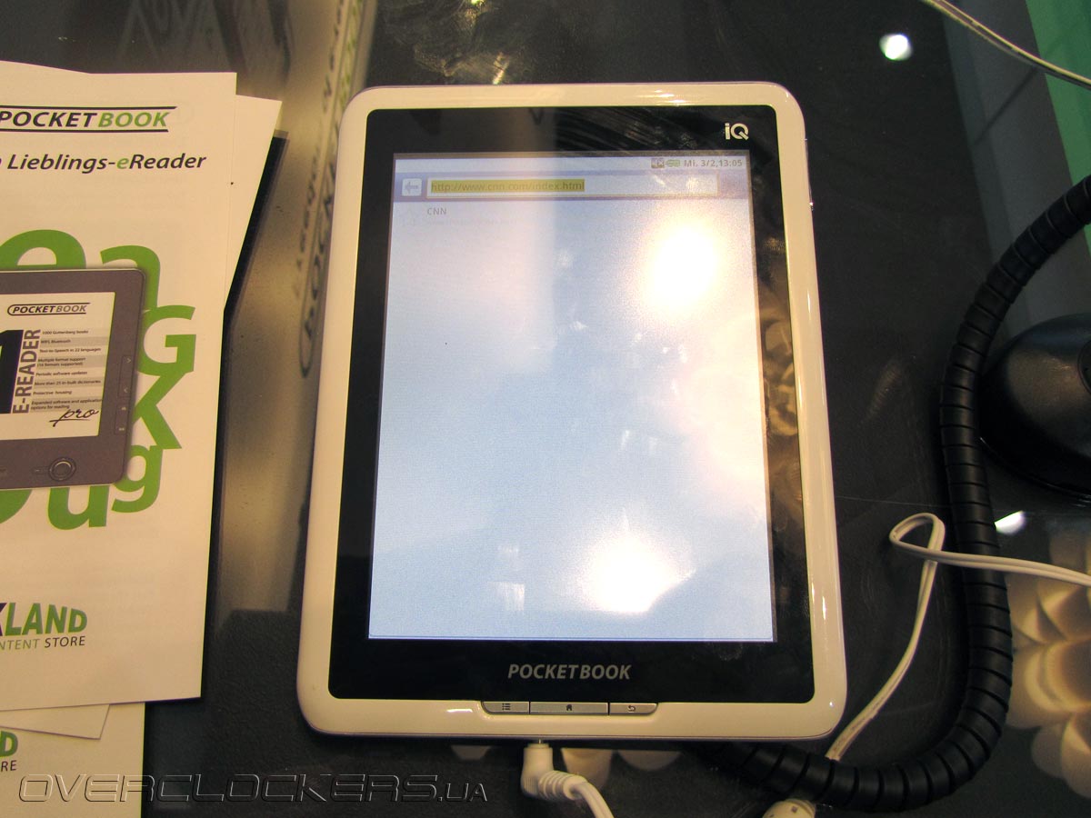 Ну и все так же имеется единственное устройство, которое скорее можно отнести к тому, что сейчас принято называть планшетами, нежели электронными книгами. Pocketbook IQ 701 оснащается цветным TFT-дисплеем с диагональю 7 дюймов и разрешением 800x600 пикселей. Данное устройство работает под управлением ОС Android 2.0, а соотвественно, является большим, чем просто электронной книгой. Для коммуникаций можно использовать интегрированный Wi-Fi адаптер. Объем внутренней памяти составляет 2 ГБ с возможностью расширения путем установки SD-карты.