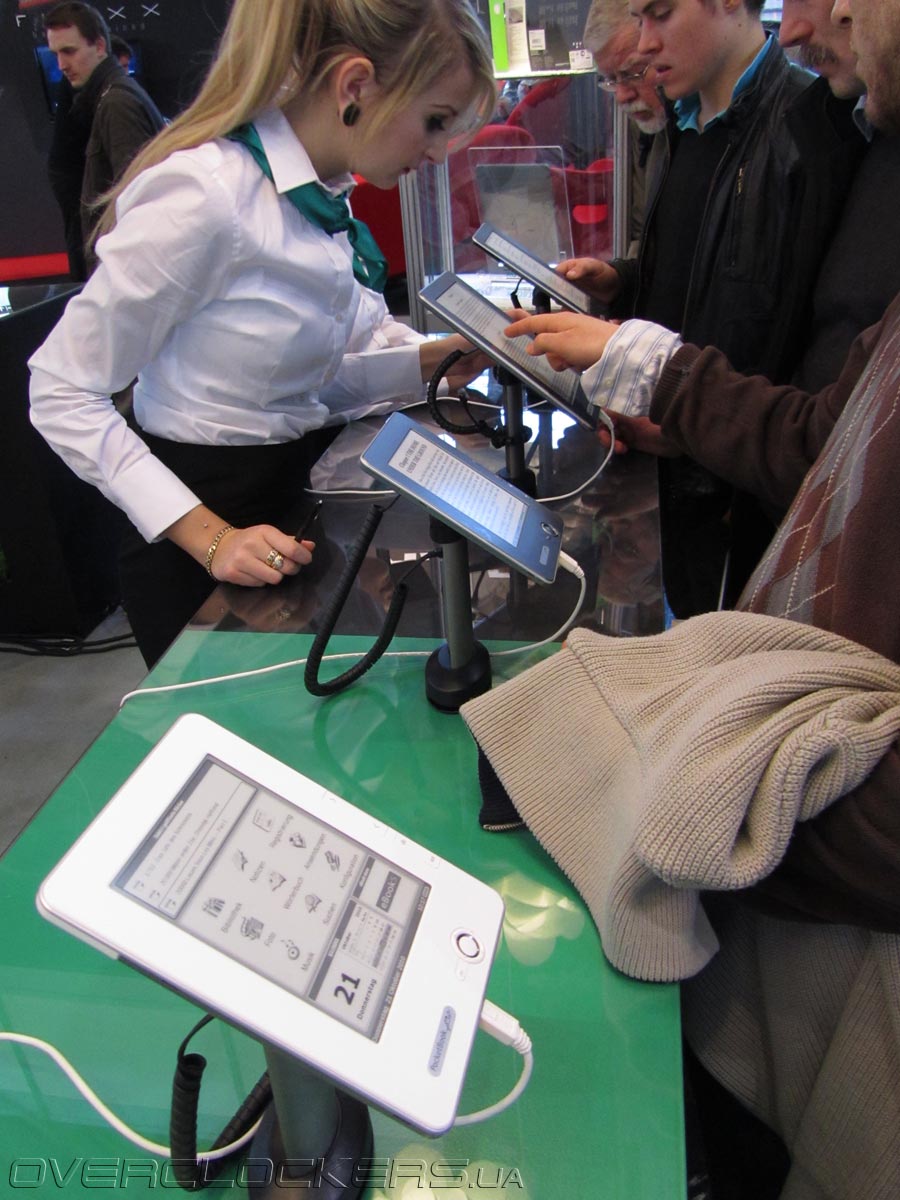 Не могли мы не заглянуть на стенд, наверное, единственной украинской компании, представленной на CeBIT — как наверняка можно догадаться — это PocketBook, известный мировой производитель электронных книг.