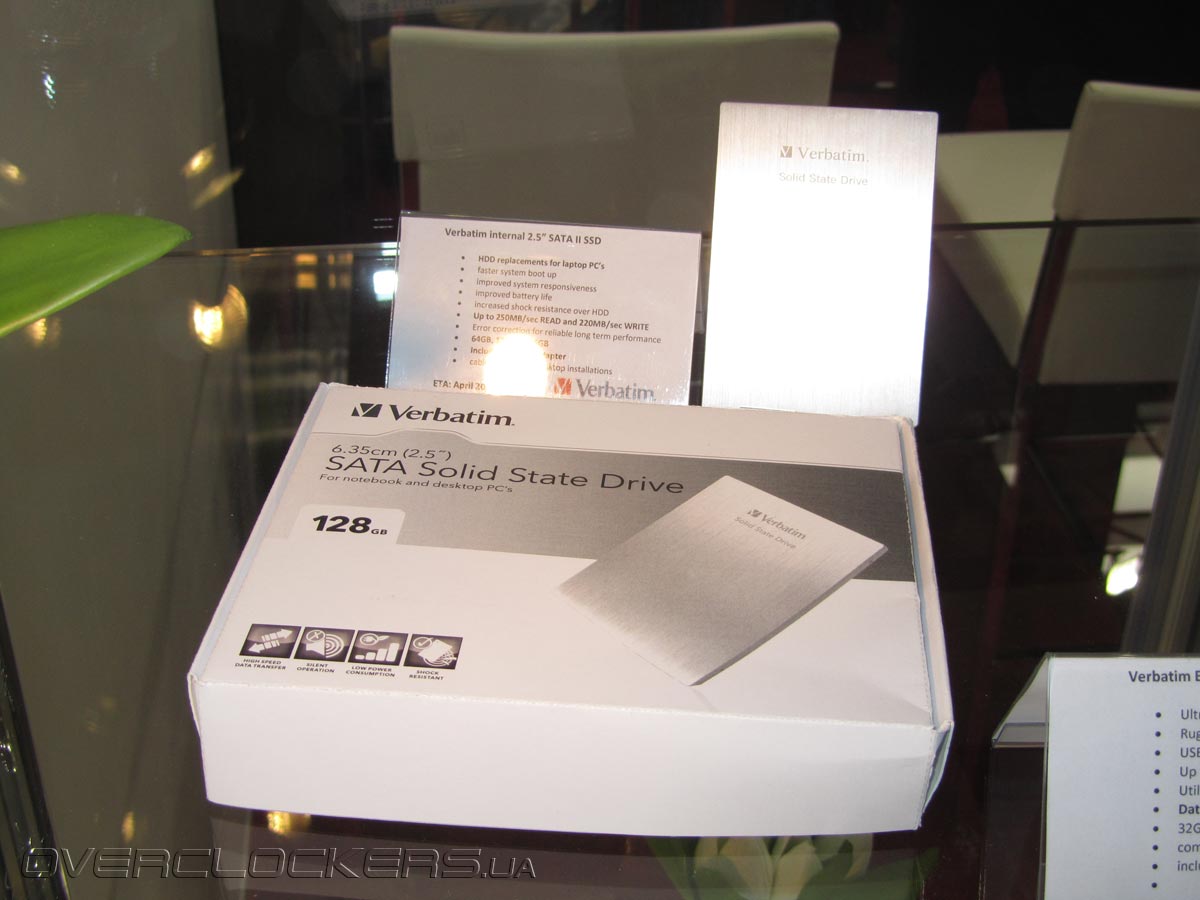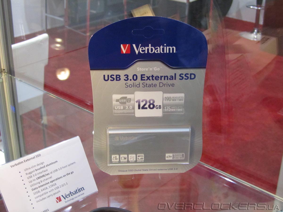 Что же до второстепенных продуктов, помимо внешних жестких дисков и флэш-накопителей, Verbatim решила попробовать себя в качестве изготовителя SSD. На данный момент доступны внешние накопители с объемами 32, 64 и 128 Гбайт. Все они представлены в серебристом алюминиевом корпусе. Информация о том, что же там внутри, пока не распостраняется. Устройства имеют интерфейс miniUSB 3.0, а с помощью переходника, имеющегося в комплекте, могут быть подключены к обычному USB-порту.