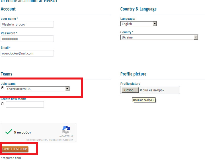 Итак, вы решили помочь команде победить. Для начала вам нужно зарегистрироваться на HWBot.org (если у вас еще нет аккаунта). Для этого в левом верхнем углу нужно выбрать Register, а при заполнении полей обязательно указать команду Overclockers.UA.