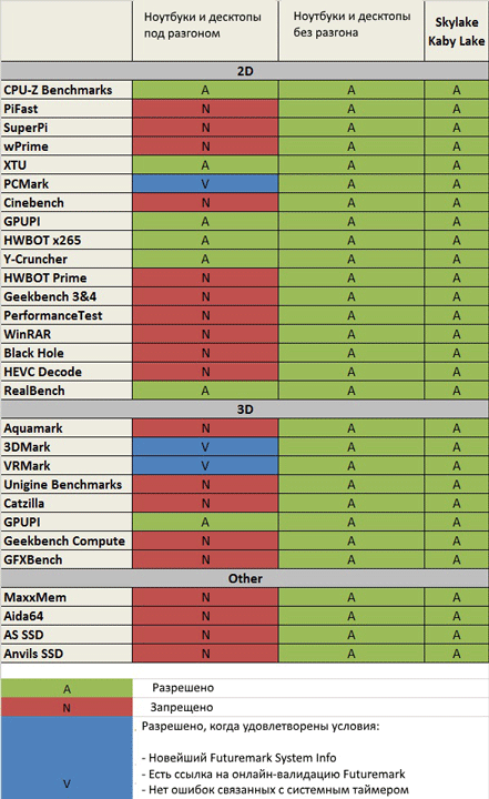 Разрешены любые операционные системы (Windows 10, 8/8.1, 7, Vista, XP), однако для SuperPi и Cinebench есть ограничения, возможно их придется проходить на более старых версиях. Причину этого можно узнать тут. Серверное оборудование и инженерные семплы использовать для тестирования, к сожалению, нельзя. Таблица того, когда можно или нельзя использовать Windows 10 прилагается:
