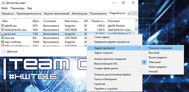 - Запустив бенчмарк нужно выставить процессу javaw.exe приоритет реального времени.