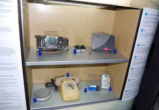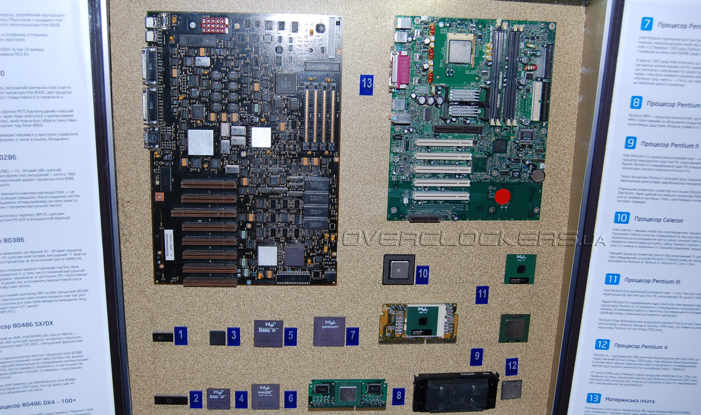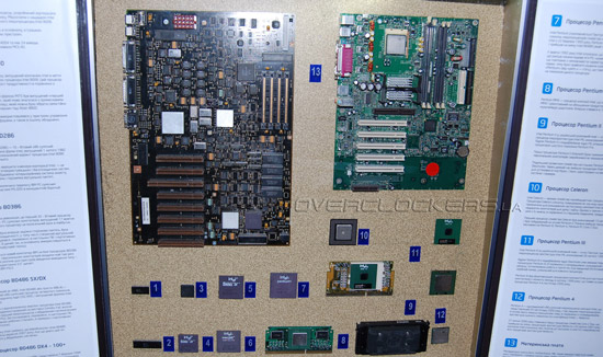Ностальгирующей публике, которой оказалось немало, было интересно взглянуть на экспонаты мини-выставки, подготовленной сотрудниками отечественного представительства Intel. В их числе оказались: Dial-Up модем GVC с прошивкой Вектор, арифмометр, материнская плата с процессором i80286 на борту, более новая плата Intel с сокетом 478, процессоры Intel P4040, i386, i486, Pentium, Pentium II, Celeron, Pentium III, Pentium IV и другие неотъемлемые атрибуты не столь отдаленного прошлого.