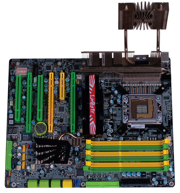 В мае наш сайт переехал на новый домен и с тех пор обитаем в Интернете по постоянному адресу //www.overclockers.ua. Главным же ньюсмейкером месяца стала Gigabyte Technology благодаря 700-долларовой материнской плате GA-X58A-UD9 форм-фактора XL-ATX. Аппаратная сторона решения, несомненно, впечатляет: семь слотов PCI Express 2.0 x16, целых два чипа-коммутатора nForce 200, четыре разъема дополнительного питания... Даже сейчас, спустя полгода, это произведение инженерного искусства оценивается в $600.