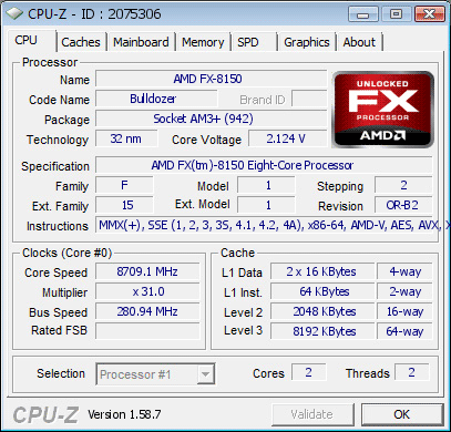 Рекорд AndreYang в CPU-Z — 8709 МГц на процессоре AMD FX-8150