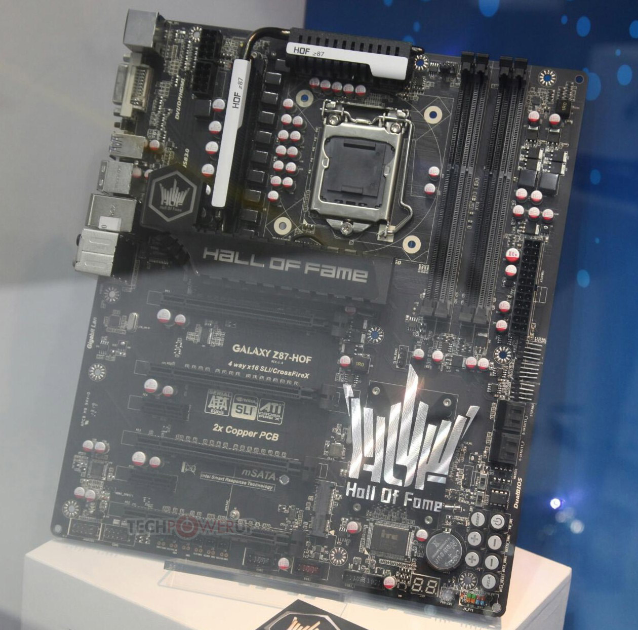 Симпатично выглядел и показанный на Computex прототип материнской платы Galaxy Z87-HOF. По неизвестной причине изделие так и не поступило в розничную продажу где бы то ни было.