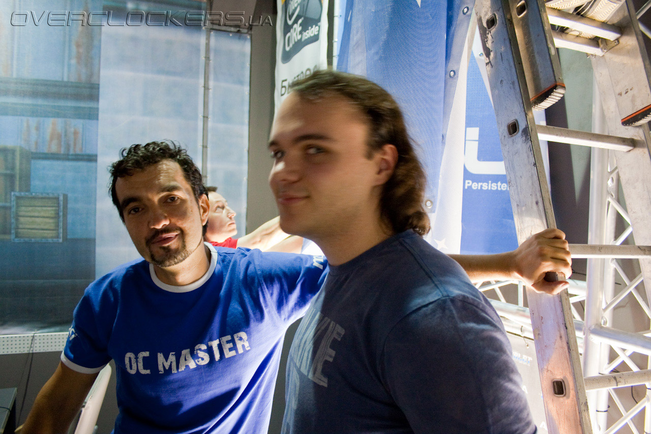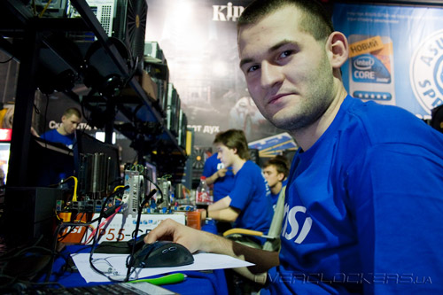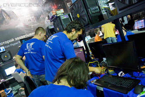 Первыми собрали стенд TiN и T0lsty, а вот у Nick.ua и MaJ0r отношения с системой не сложились. Экстрим-ПК отказался стартовать, что заставило перебрать гору комплектующих, потеряв драгоценное время. Как оказалось, причиной тому стали нерабочая материнская плата и центральный процессор, павшие смертью храбрых дома у кого-то из финалистов. Напомним, что часть комплектующих была разослана участникам для подготовки к конкурсу. В итоге из положенных трех часов, парни бенчили чуть больше часа, при этом сумев показать достойный результат.