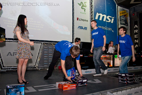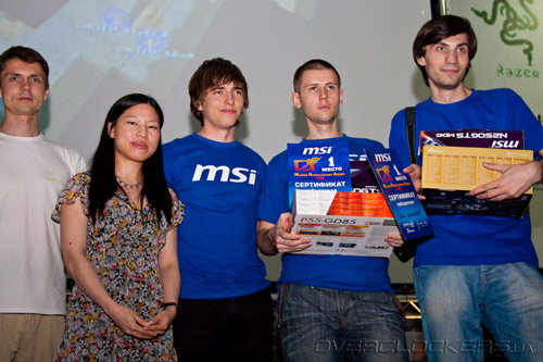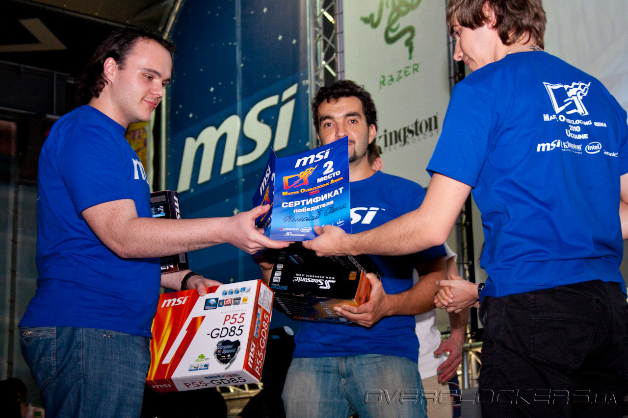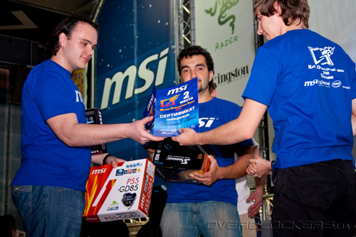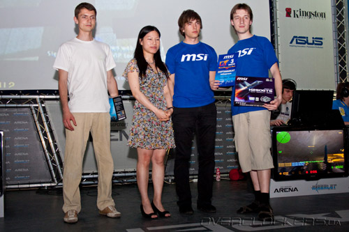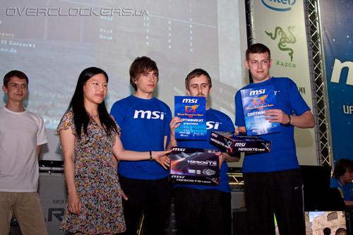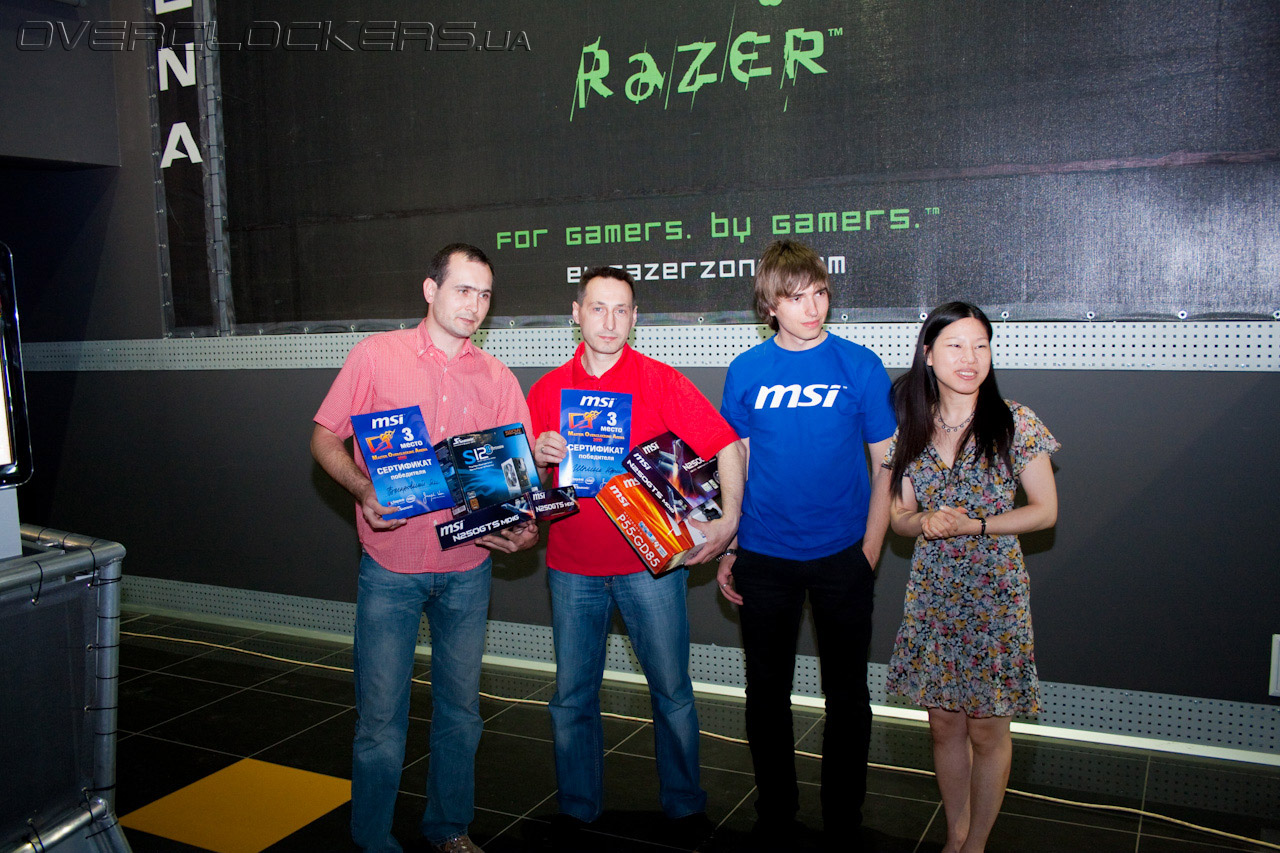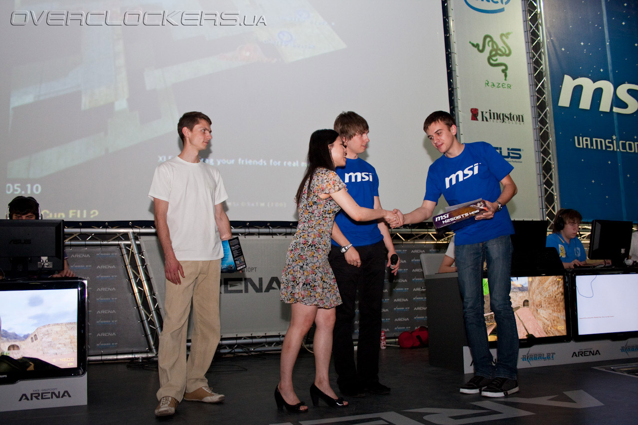 Церемонию награждения победителей возглавили глава представительства MSI в Украине Айрин Чен (Irene Chen) и технический специалист компании MSI и организатор мероприятия Сергей Шульга. Юрий «Highgertz» Шпинь и Ян «Yannn» Безкровный получили по видеокарте MSI N250GTS-MD1G, материнскую плату MSI P55-GD85 и блок питания Seasonic S12II-520.