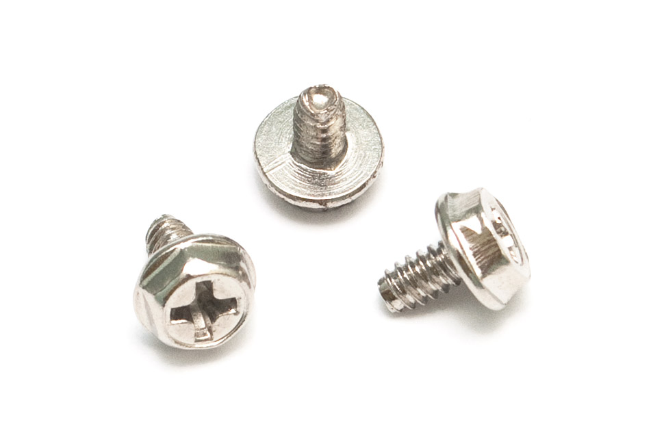 Эти товарищи когда-то поставлялись в комплекте в жесткими дисками Samsung. Приятный был бонус — купил винчестер и сразу его установил, тем самым избавив себя от поиска подходящего крепежа. Плюс в них еще то, что шлиц дополнительно позволяет использовать плоскую отвертку, т.е. это одни из самых функциональных болтиков в нашем обзоре. Впрочем, как и шестигранные.